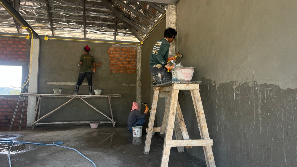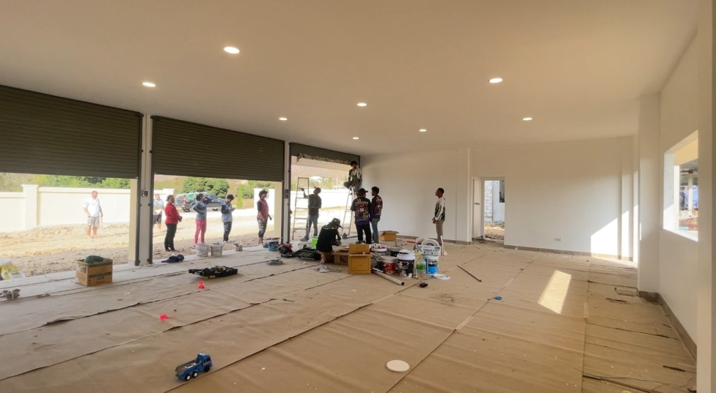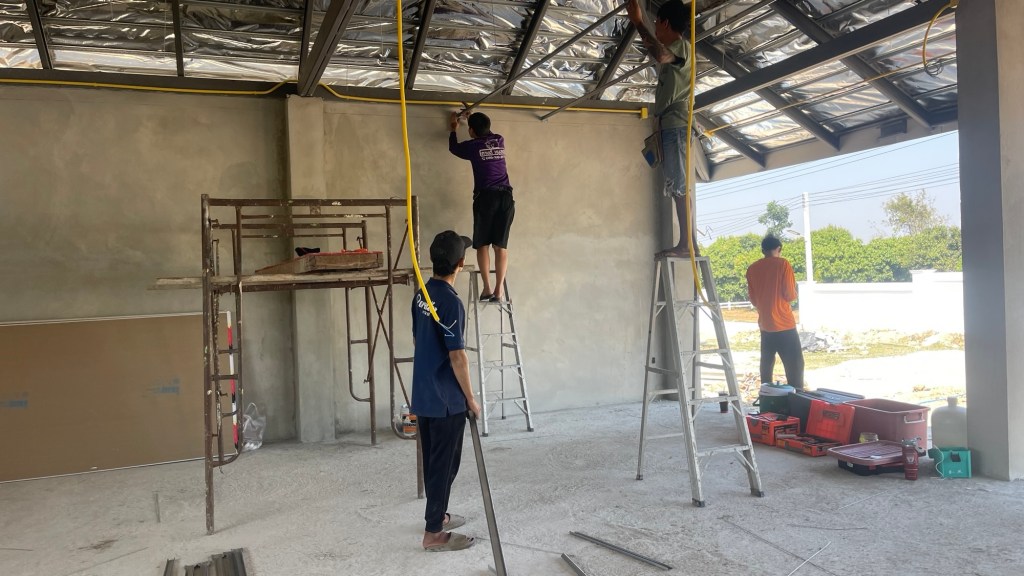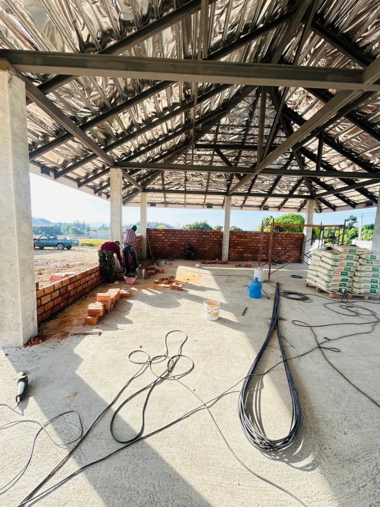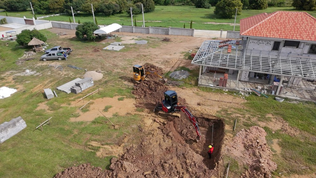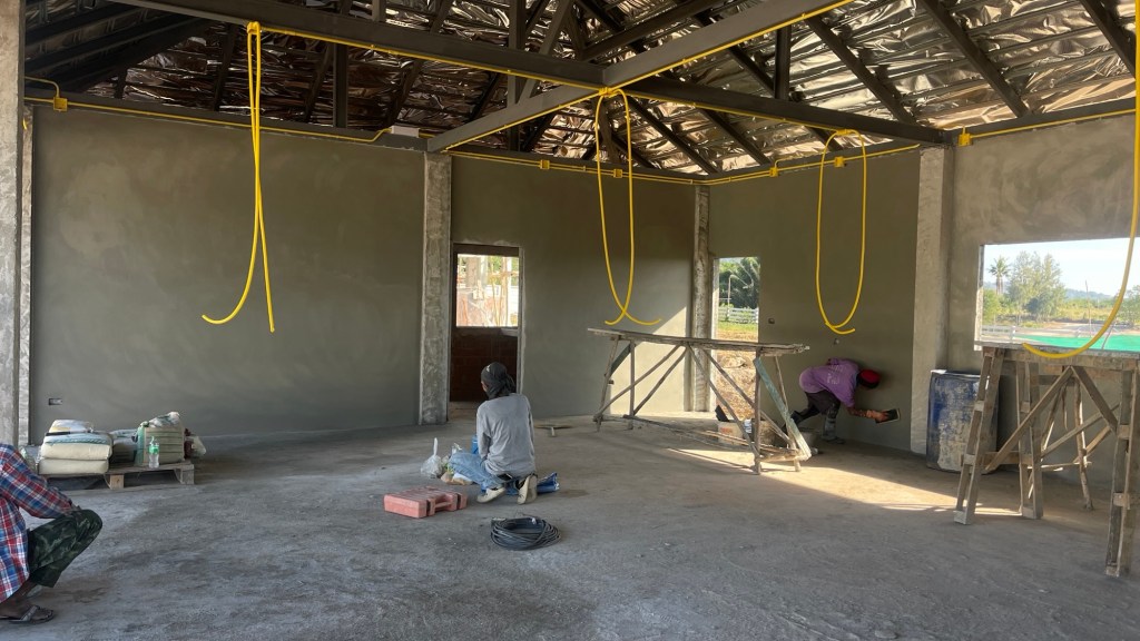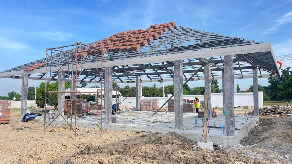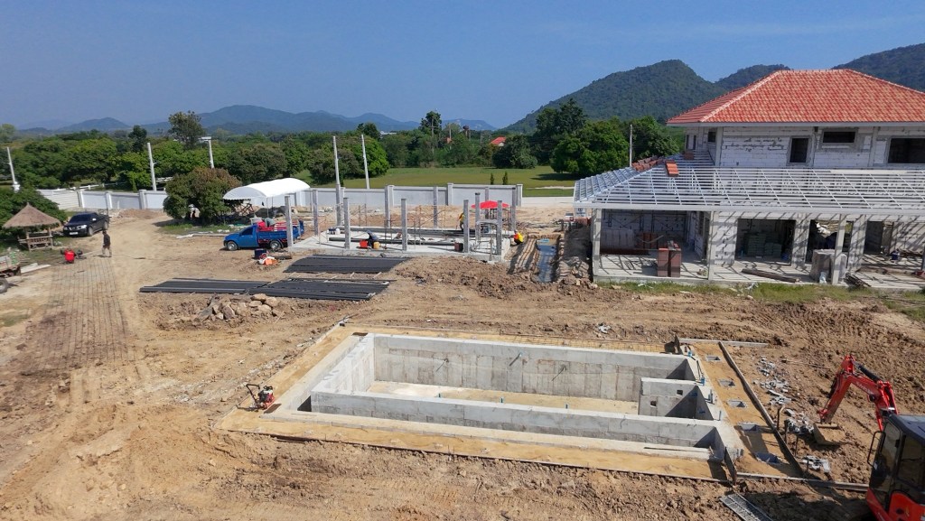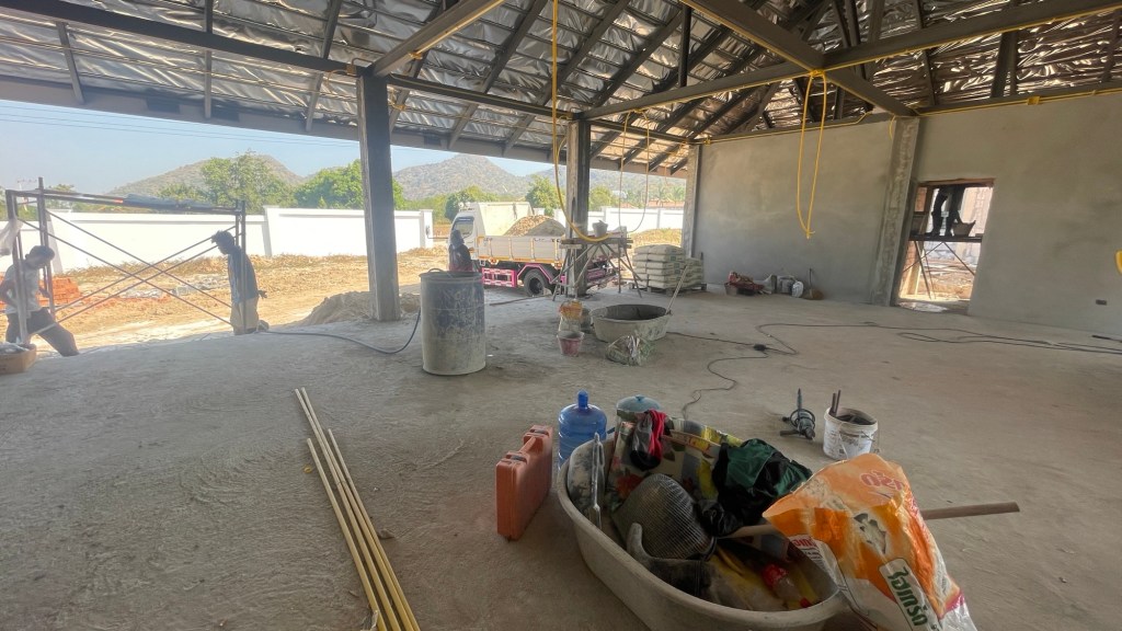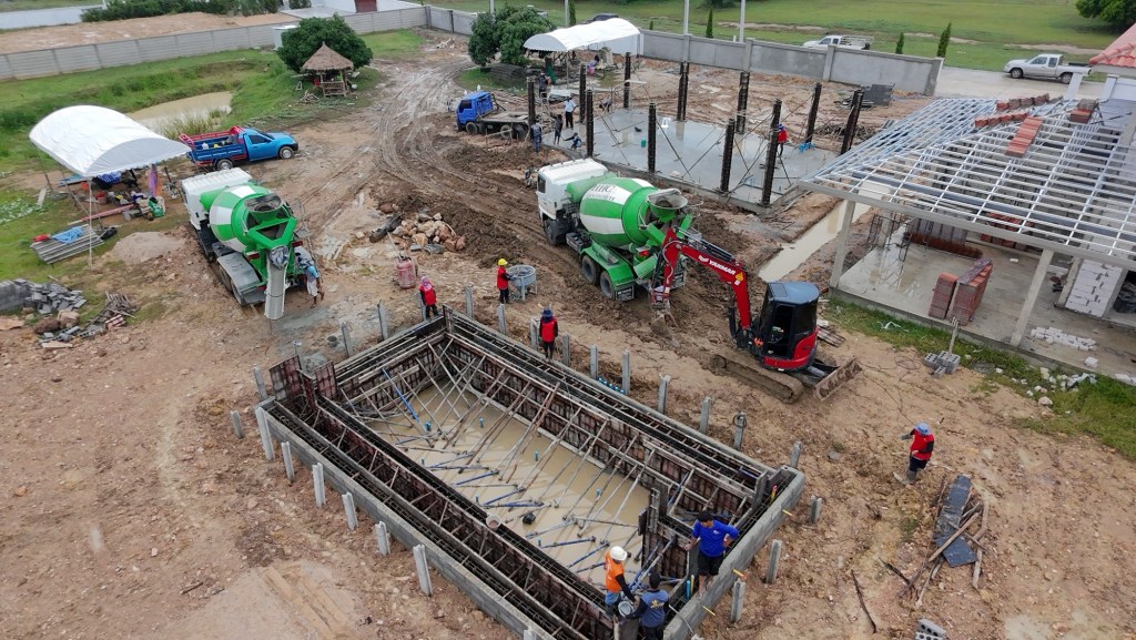 งบการก่อสร้าง 1.4 ล้านบาท เป็นโรงตัวอาคารแบบบ้าน มีห้องน้ำ ห้องซักรีด ห้องเครื่องปั้มสระว่ายน้ำ และพื้นที่จอดรถ 3 ช่องคูหา