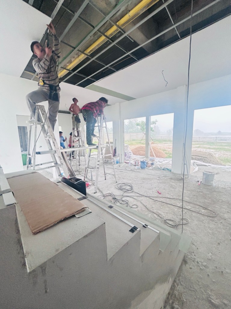 ค่าก่อสร้าง 1.4 บ้านบาท งานฝ้า งานทาสีสกิมโค้ช งานติดบัว งานปูกระเบื้อง(ลูกค้ามีกระเบื้องเอง) งานเก็บผนัง งานระบบสุขาภิบาล งานกระจกอลูมิเนียม